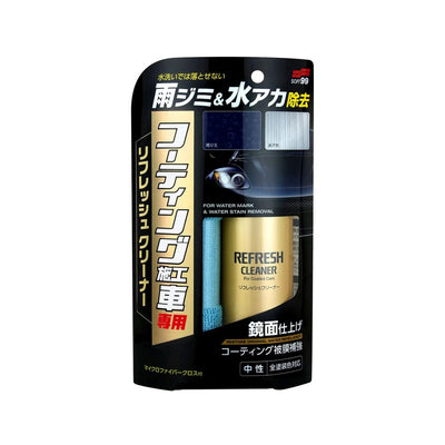 Cleaner design for glass/ceramic coating contains only mild cleaning ingredients. Restoring brightness of coated vehicle body. Symptoms such as water spots, small scratches on door knobs can be easily removed!