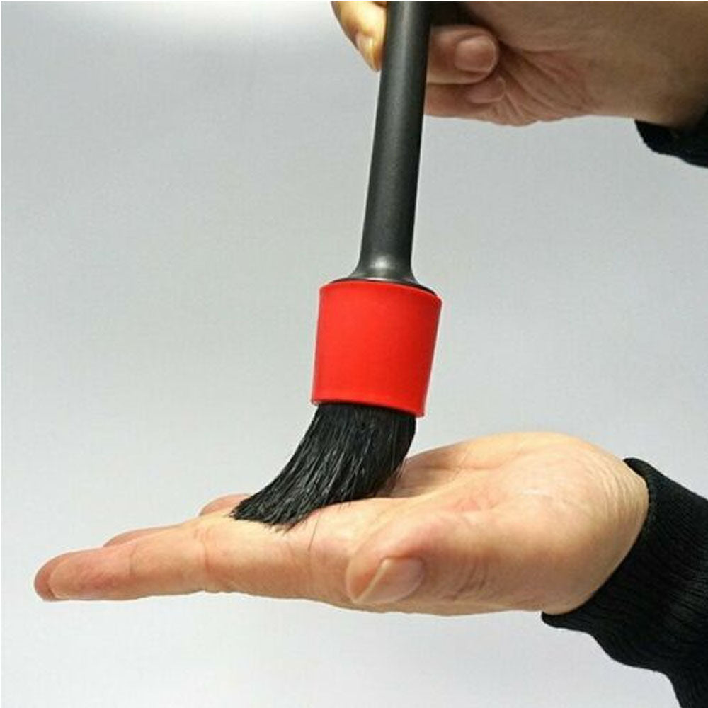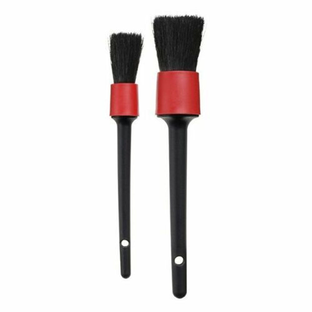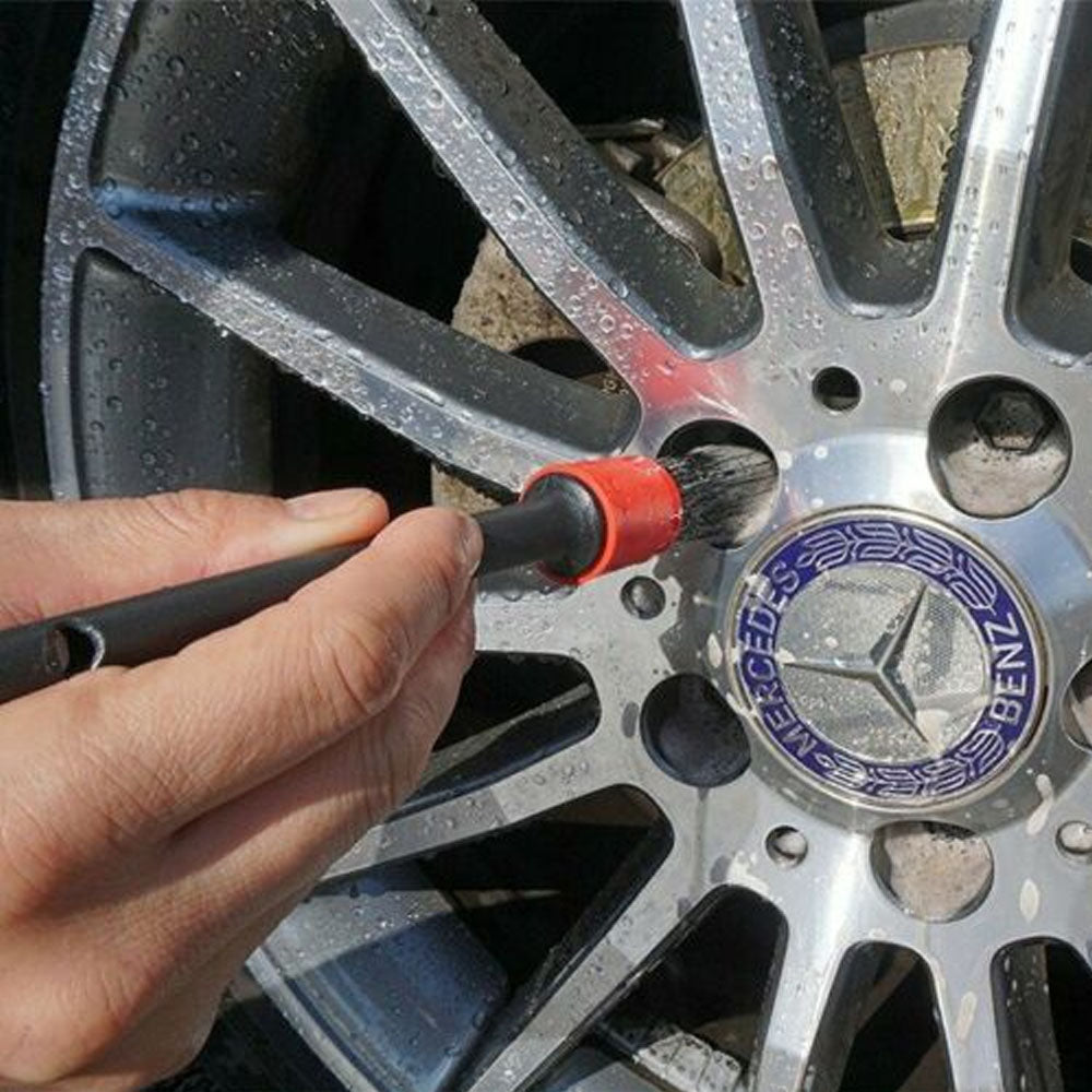 Brushes designed for cleaning narrow and awkward parts of wheels, such as nut holes and around valves. Brush tip made from pig hair. Unlike artificial fibres, pig hair has excellent balance between liquid retention and spreading. Grip made from polypropylene.