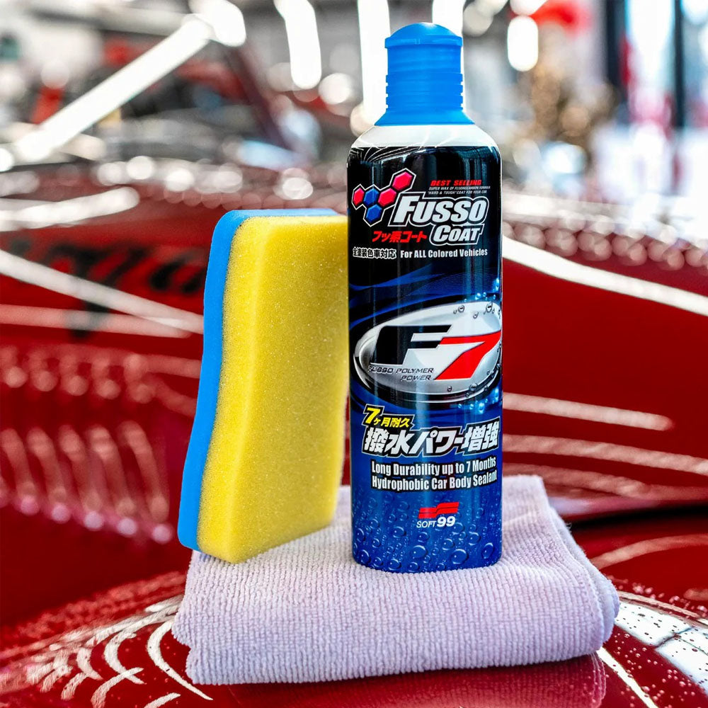 Fusso Coat F7 is a liquid sealant based on Fusso fluorine polymers. Product creates a shiny, super hydrophobic coat on the car’s body. Included applicator gives an even and smooth application. F7 is a perfect alternative for those who live in a hurry but still want to have unparalleled paint protection. Product is durable for up to 7 months with regular maintenance.