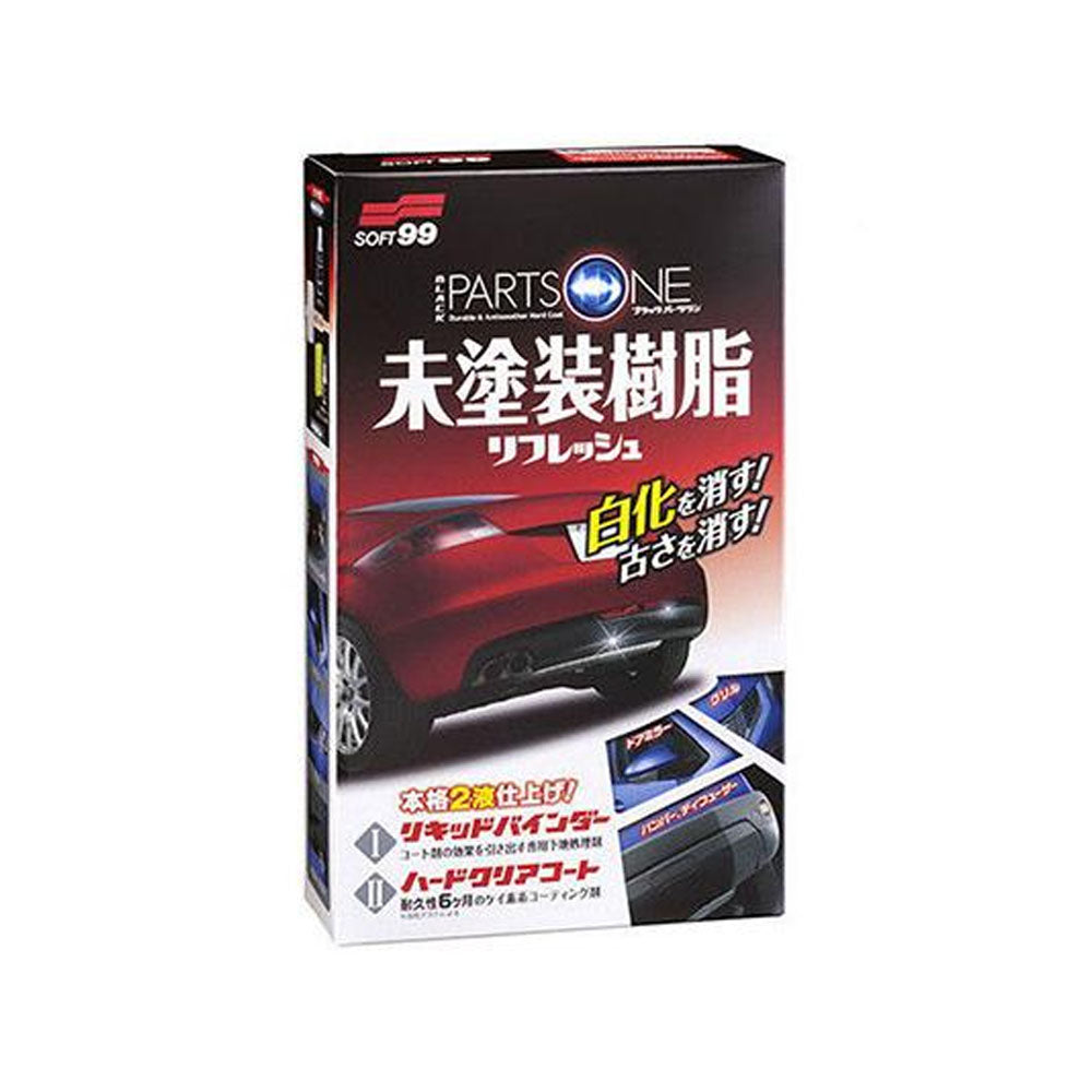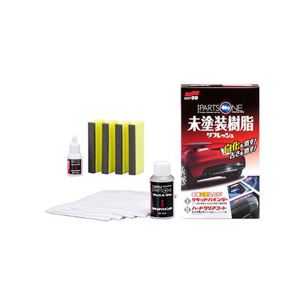 Restoration for unpainted resin parts such as a bumper or around wipers. Included 'Liquid Binder' removes dirt marks from the surface of resin parts, and 'Hard Clear Coat', creating a Silicon-based thick hard film coating.