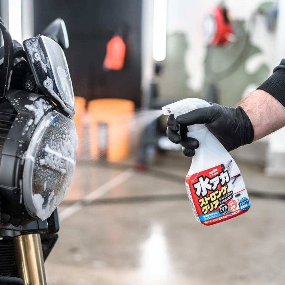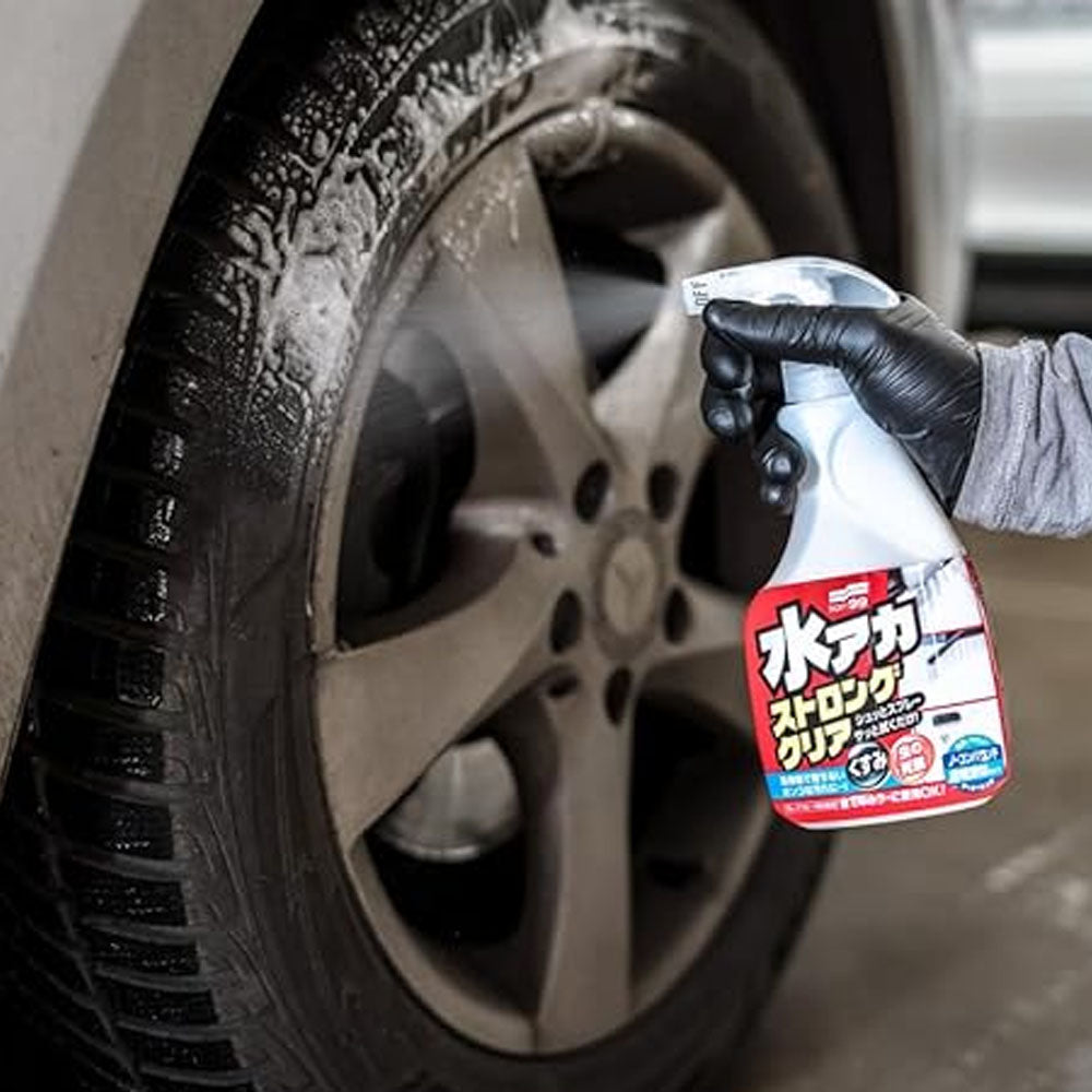With Stain Cleaner Strong Type, all you need to do is spray and wipe it off. The white powder won't remain on the surface and re-wiping is NOT necessary. It chemically breaks down and gets rid of stubborn dirt, which normal car shampoo couldn't do. Abrasive compounds are NOT included, so it won't damage your car paint. The fresh scent of grapefruit gets rid off bad odor during the process.
