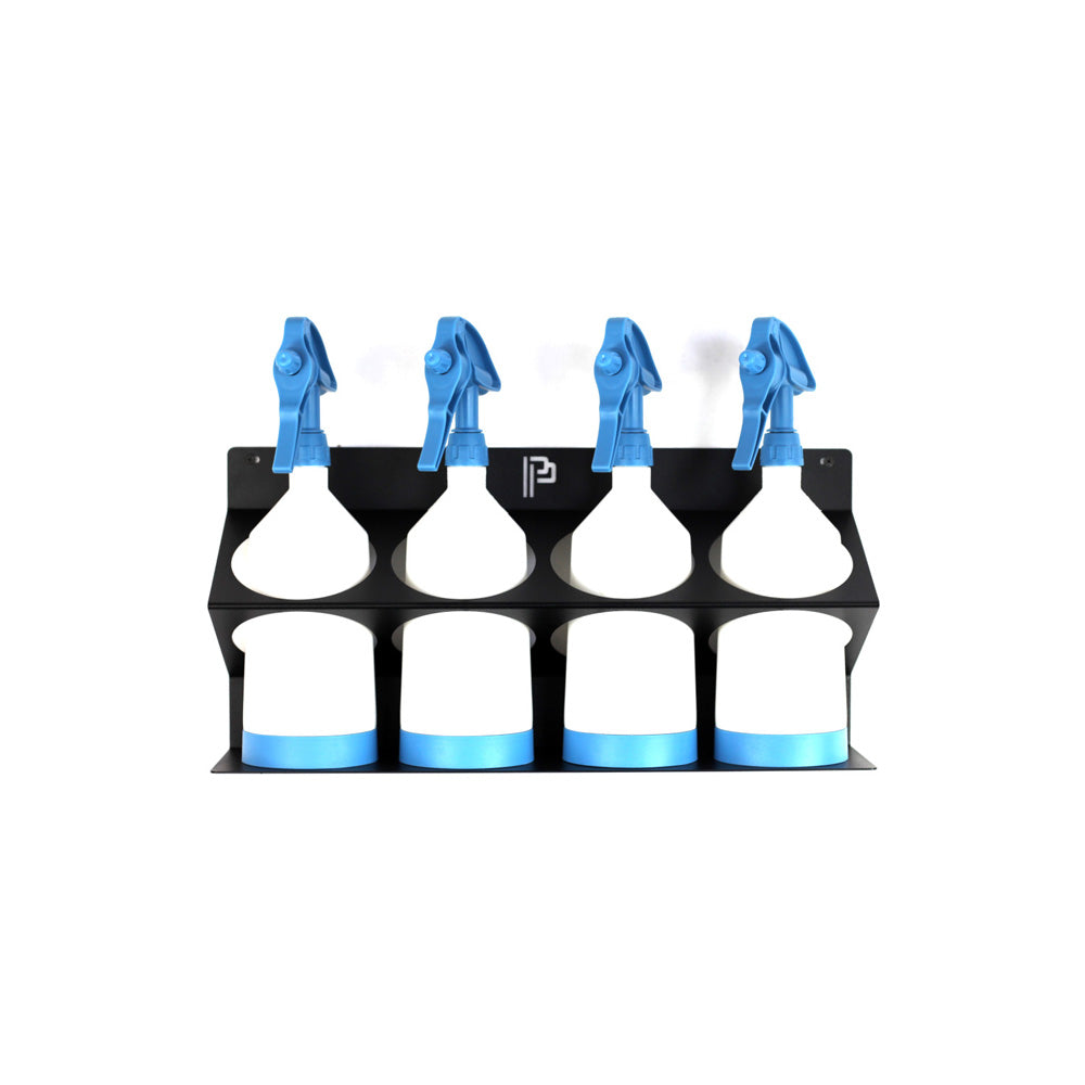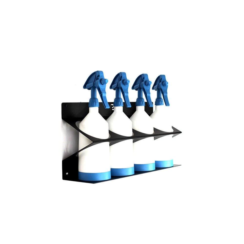 1.5L bottle holder to organise 4 of your favourites bottle or compounds. The design allows for storage of spray bottle without straining the trigger spray.