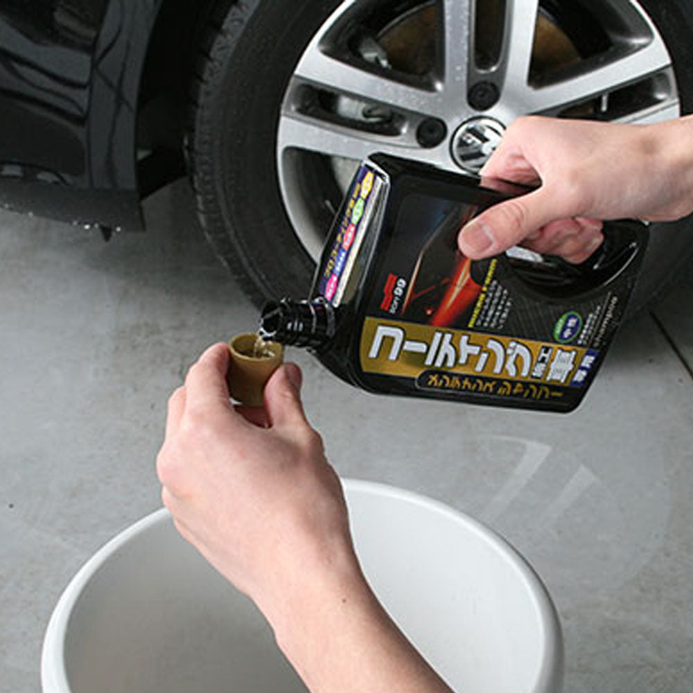 2. Pour shampoo into bucket or apply squirt directly onto a sponge, create lather, then wash whole vehicle.