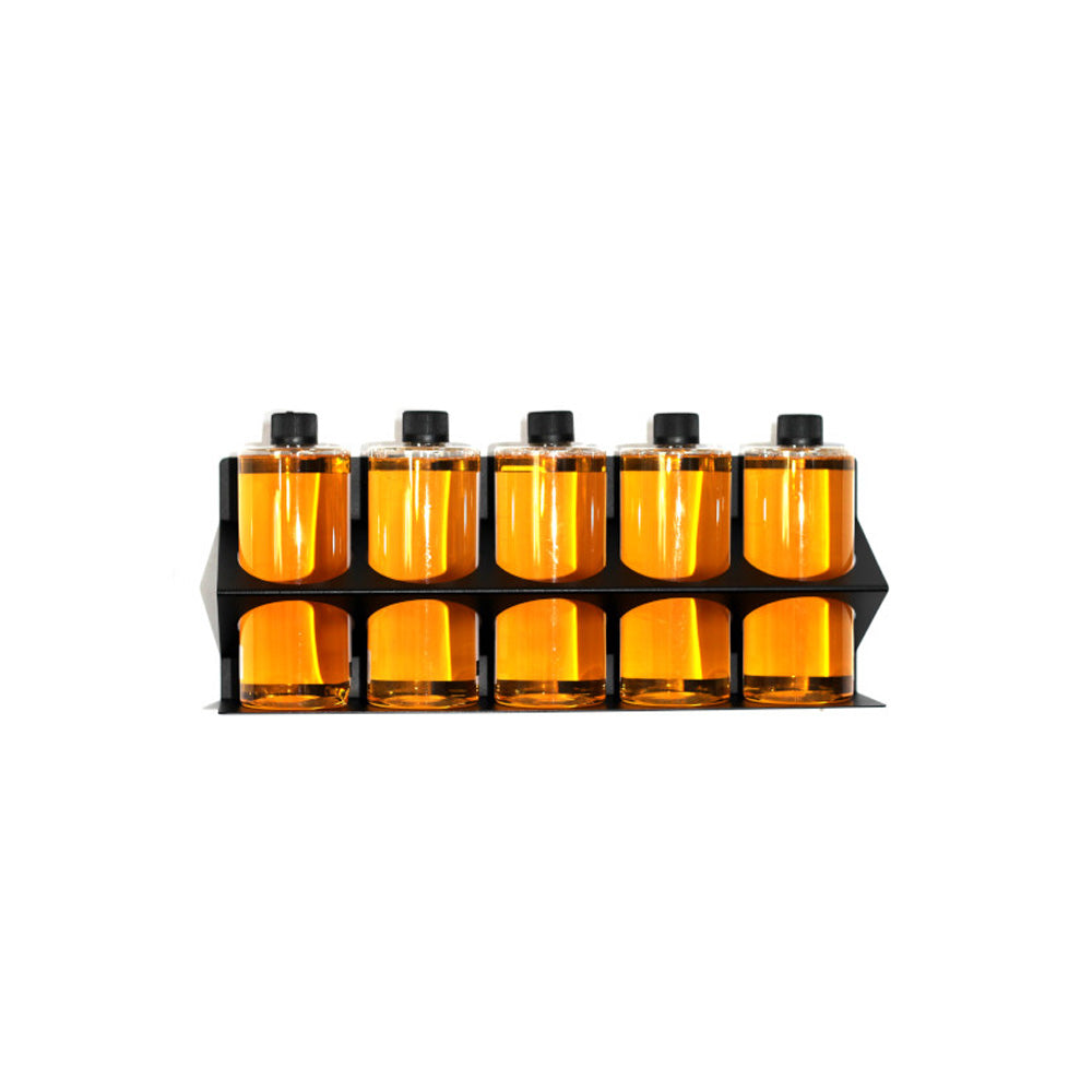 Functional and comfortable brush holder. The upper openings are suitable for most brush sizes the lower channels are suitable for most types of atomizers and sprayers. The solid structure will hold up over 10 kg of load without lifting. Front panel laser cut inscription - WHEELS