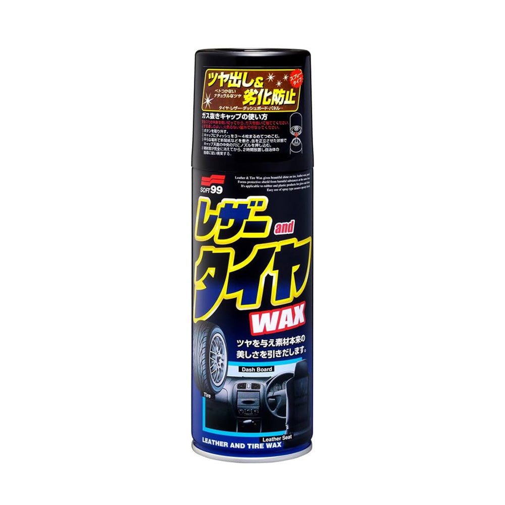 Prevents tires and plastic leather from deteriorating, also gives a glossy finish to the surface. Wax brings out the maximum natural shine in the texture of the material. Wiping not necessary when using on tire. When using on leather, wipe off with a cloth after spraying.
